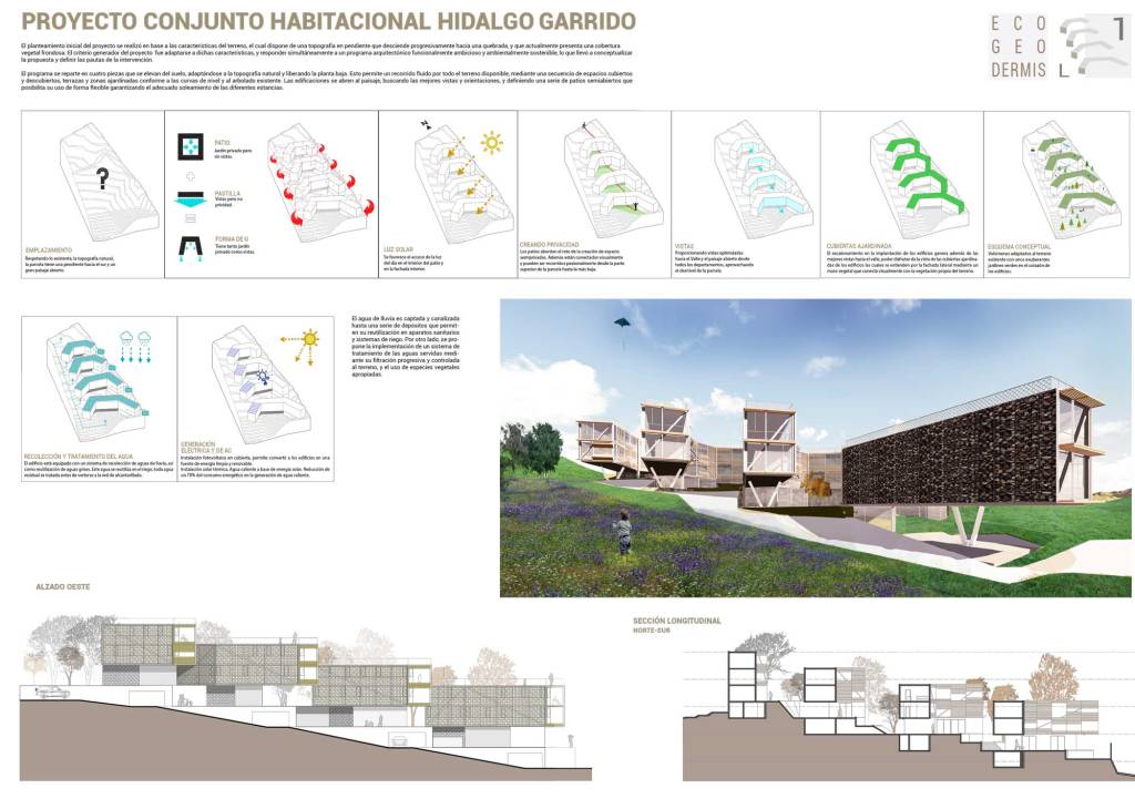 Programa: 4 viviendas unifamiliares autosuficientes más zonas comunes, jardines y aparcamiento.