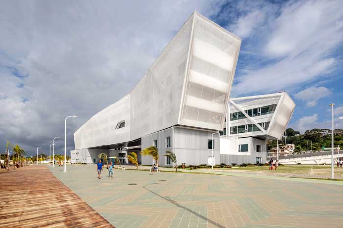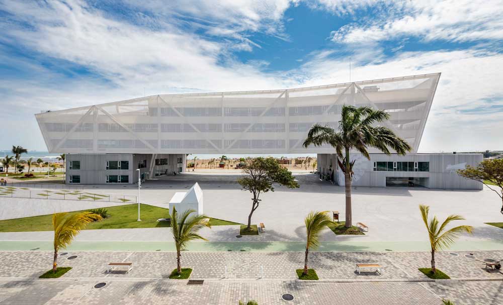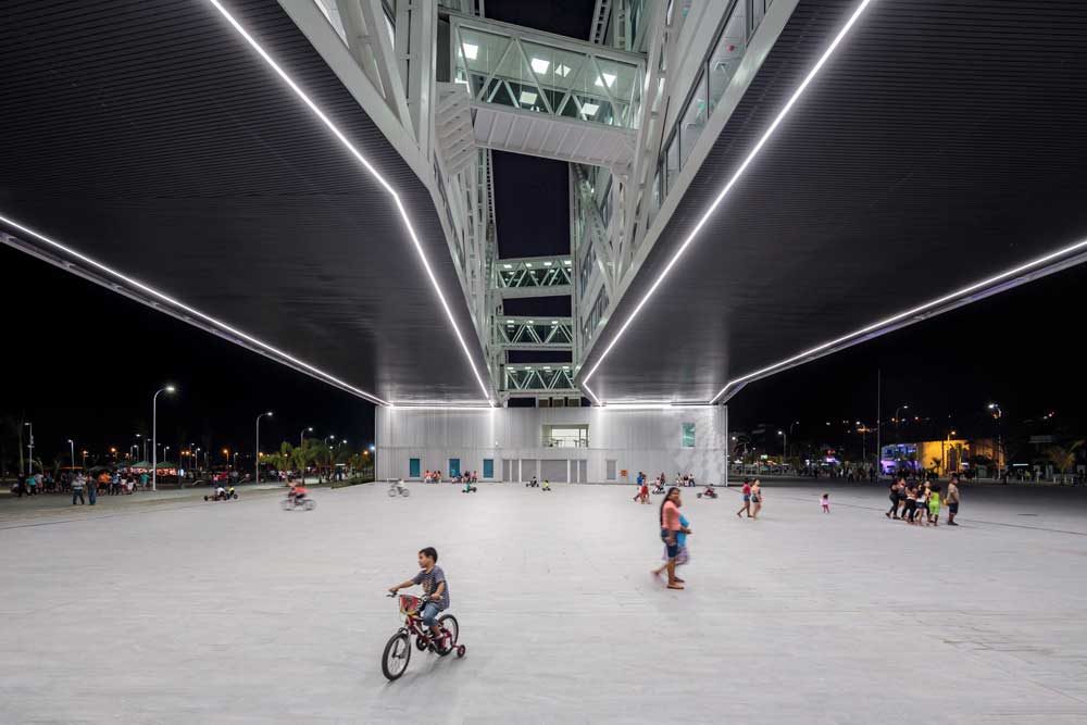 Edificio administrativo EP FLOPEC Localización: Playa Las Palmas, Esmeraldas (Ecuador). Superficie construida: 6000 m2. Capacidad: 350 trabajadores. Año de construcción: 2016. Plaza cubierta Fachada principal Vista desde Malecón
