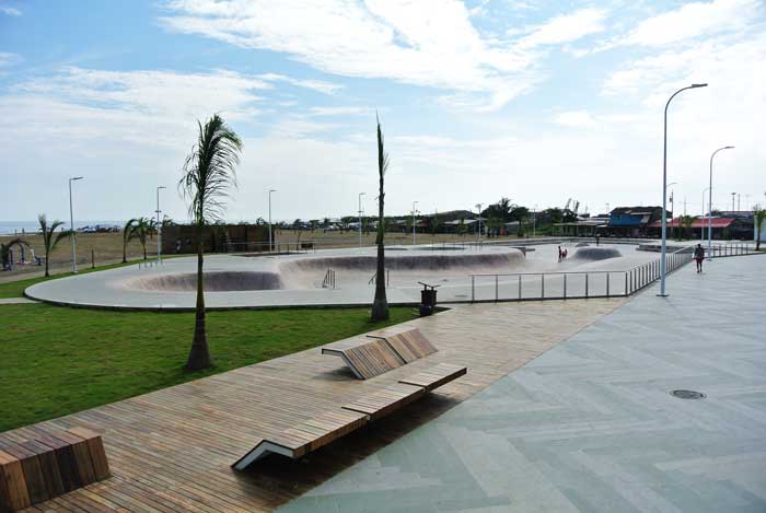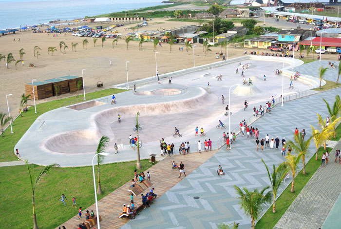 Skate Park Localización: Playa Las Palmas, Esmeraldas (Ecuador). Año de de ejecución: 2016. Superficie: 3000m2 Vista Pista Vista general Zona Mini Half Pipe Vista desde malecón Vista general Skate Park Esmeraldas