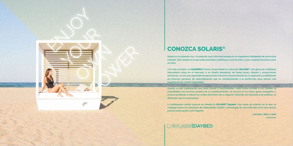 Solaris daybed. Balinesa fotovoltaica autónoma. Enjoy your own power Customiza a tu gusto Solar Design Solaris Daybed. Cama balinesa fotovoltaica. Photovoltaic design.